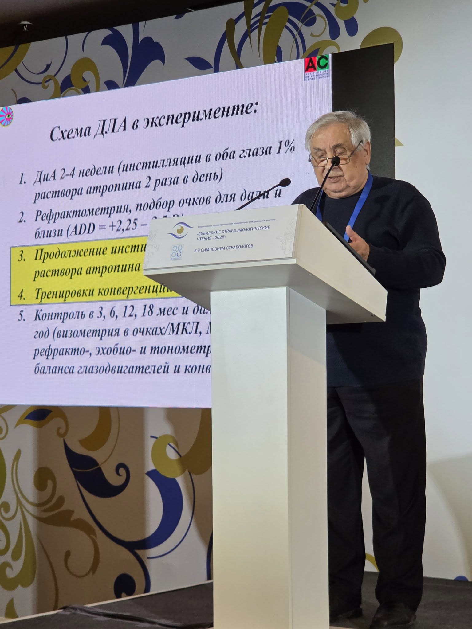 И.Л. Плисов сделал фундаментальный доклад об анатомо-физиологических основах глазодвигательной системы. Проф. В.И. Поспелов рассказал о всем известном тесте Worth и о том, чего многие не знают - что с его помощью можно определить 10 разновидностей бинокулярного зрительного восприятия (БЗВ). Проф. М.Г. Катаев – об анатомии с точки зрения оперирующего хирурга-страболога.